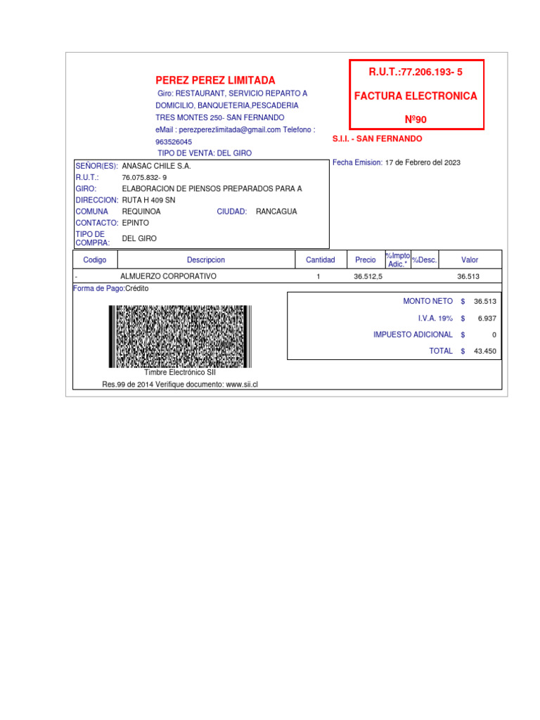 SEÑOR(ES): ANASAC CHILE S.A. Fecha Emision: 17 de Febrero del 2023