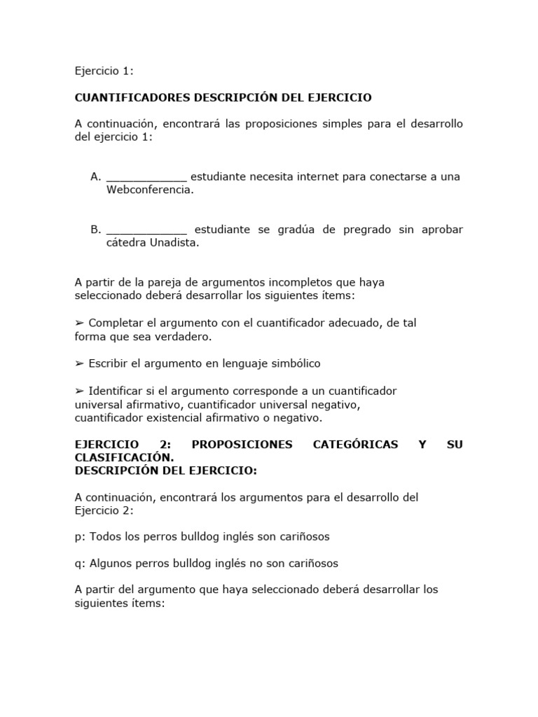 EJERCICIO 2: PROPOSICIONES CATEGÓRICAS Y SU