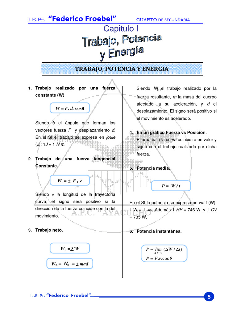 constante (W) fuerza resultante, m la masa del cuerpo
