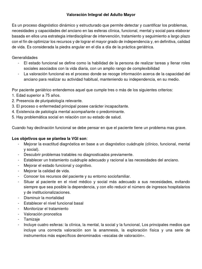 necesidades y capacidades del anciano en las esferas clínica, funcional, mental y social para elaborar