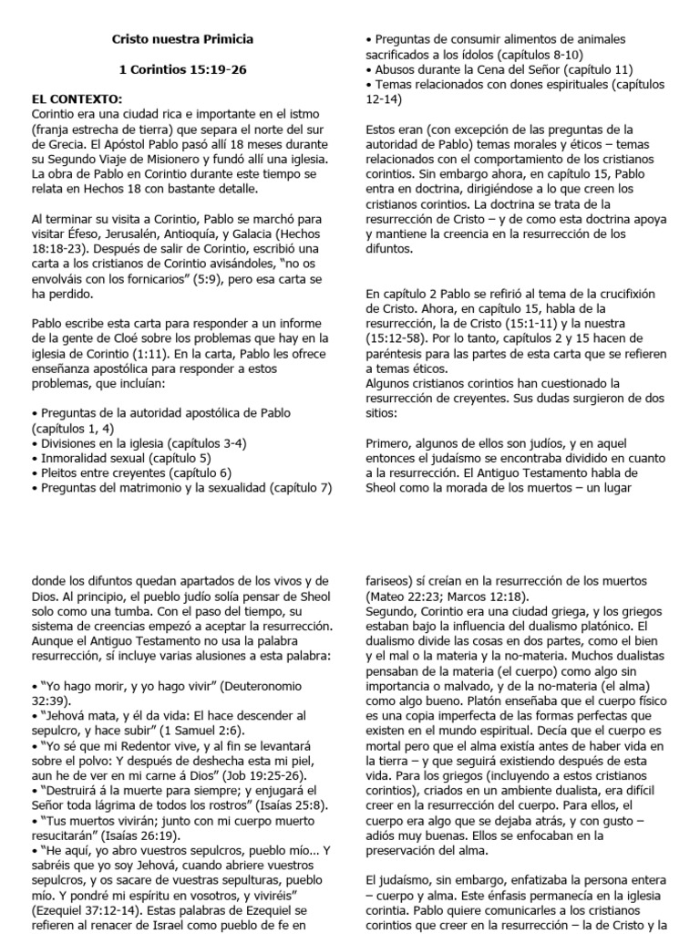 La obra de Pablo en Corintio durante este tiempo se corintios. Sin embargo ahora, en capítulo 15, Pablo