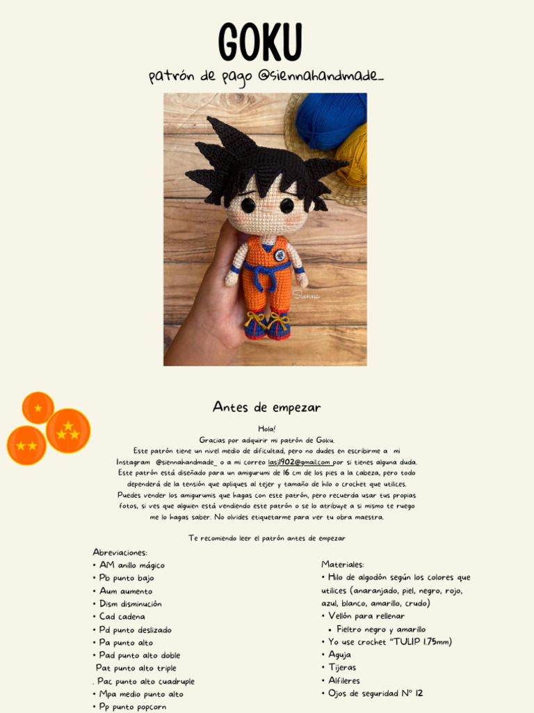 Gracias por adquirir mi patrón de Goku.