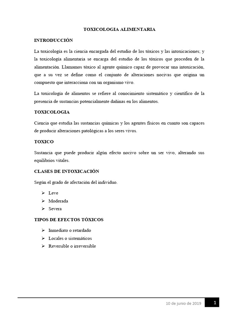 la toxicología alimentaria se encarga del estudio de los tóxicos que proceden de la