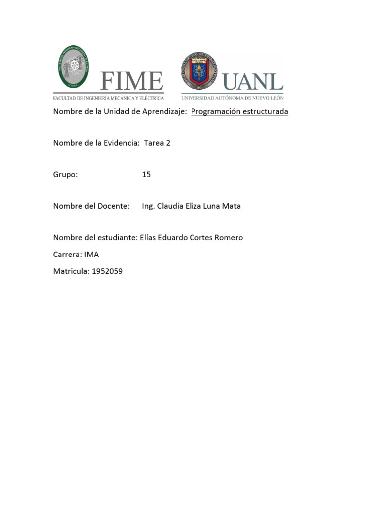 Nombre de la Unidad de Aprendizaje: Programación estructurada