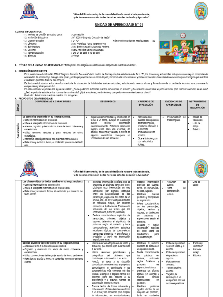 2. TÍTULO DE LA UNIDAD DE APRENDIZAJE: “Trabajamos con alegría en nuestras aulas respetando nuestros acuerdos”.