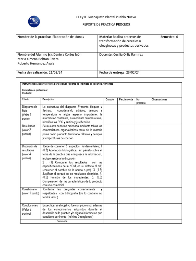 Nombre de la practica: Elaboración de donas Materia: Realiza procesos de Semestre: 6