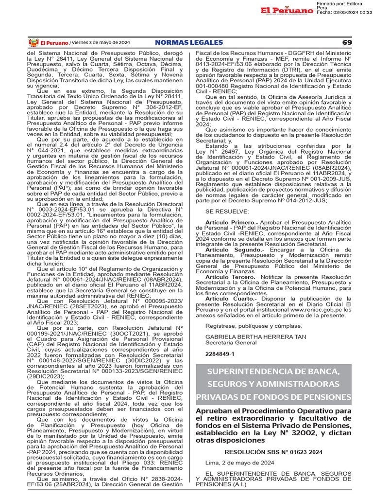 Resolución Secretarial N° 000133-2023/SGEN/RENIEC SUPERINTENDENCIA DE BANCA,