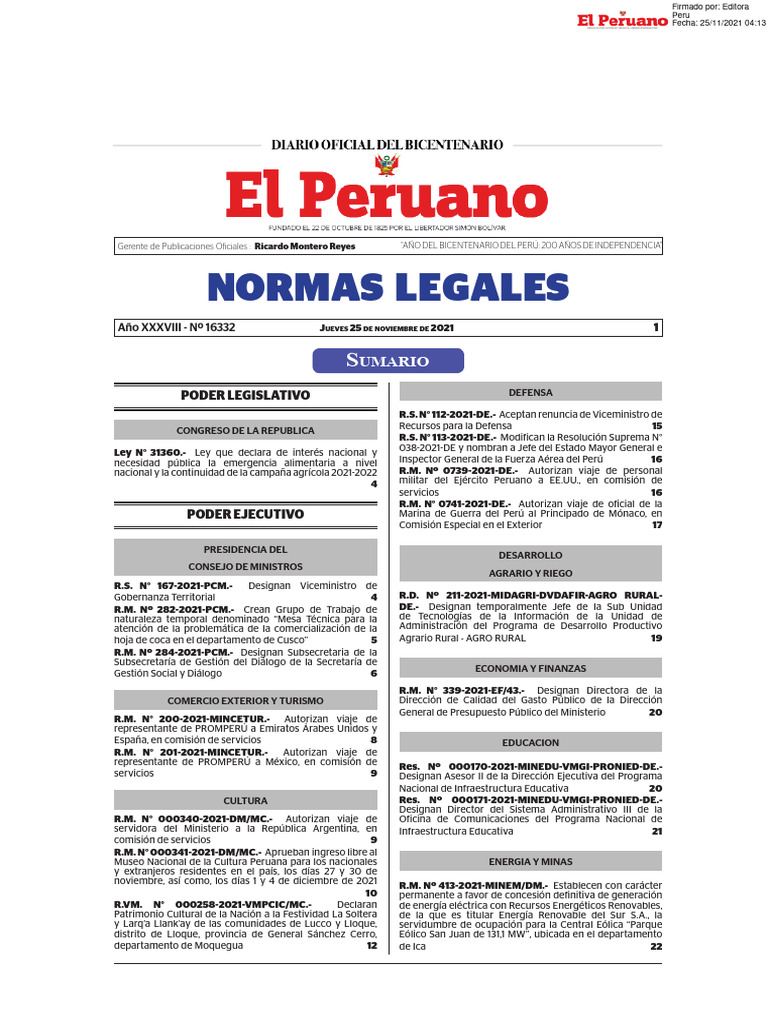El Peruano / Jueves 25 de noviembre de 2021 NORMAS LEGALES 3