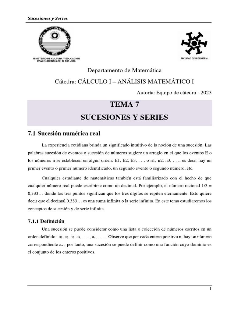Cátedra: CÁLCULO I – ANÁLISIS MATEMÁTICO I