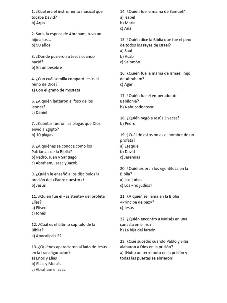 1. ¿Cuál era el instrumento musical que 14. ¿Quién fue la mamá de Samuel?