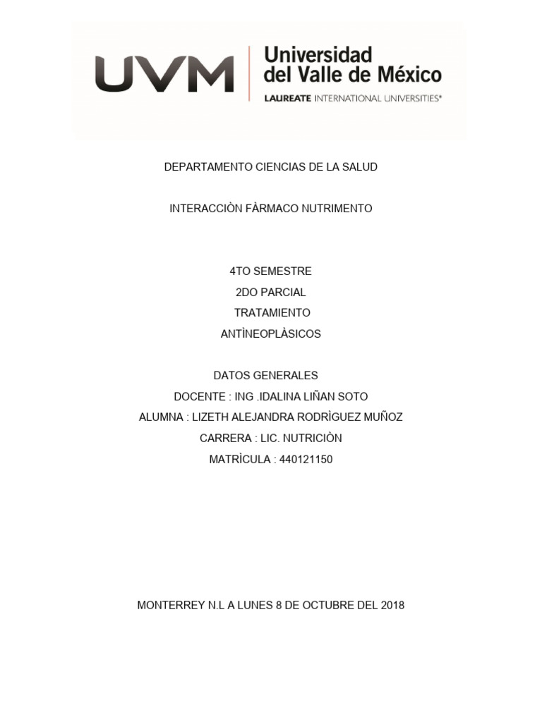 INTERACCIÒN FÀRMACO NUTRIMENTO