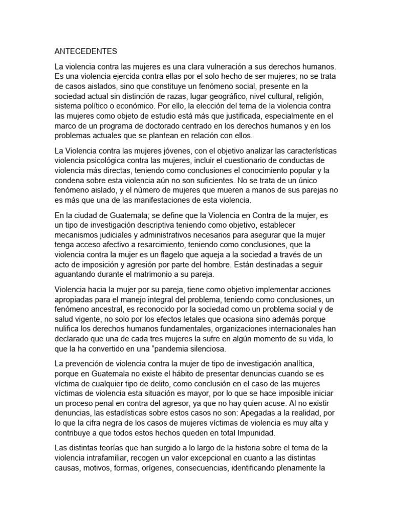 La Violencia contra las mujeres jóvenes, con el objetivo analizar las características