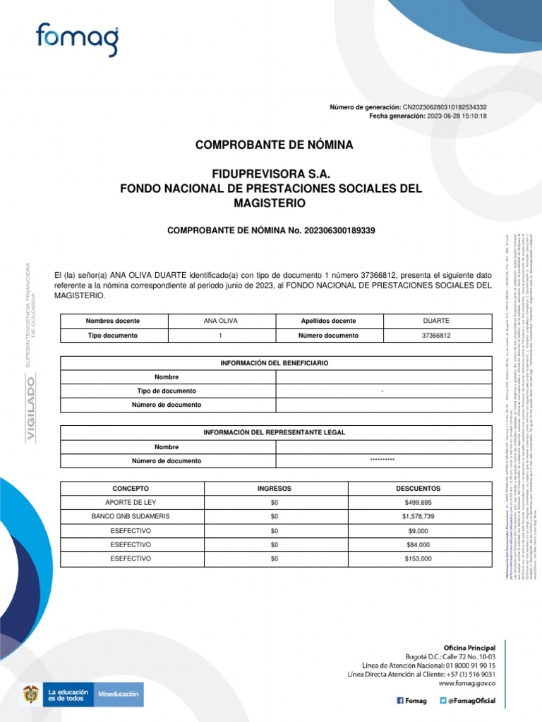 COMPROBANTE DE NÓMINA No. 202306300189339