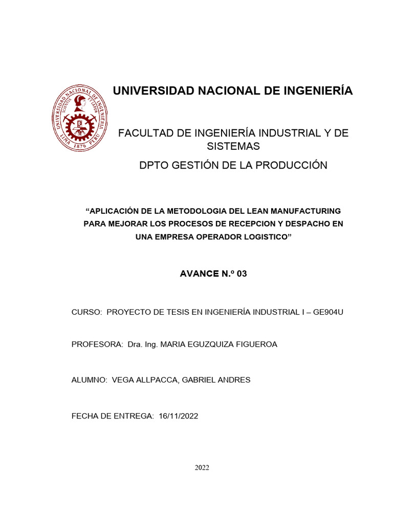 CURSO: PROYECTO DE TESIS EN INGENIERÍA INDUSTRIAL I – GE904U