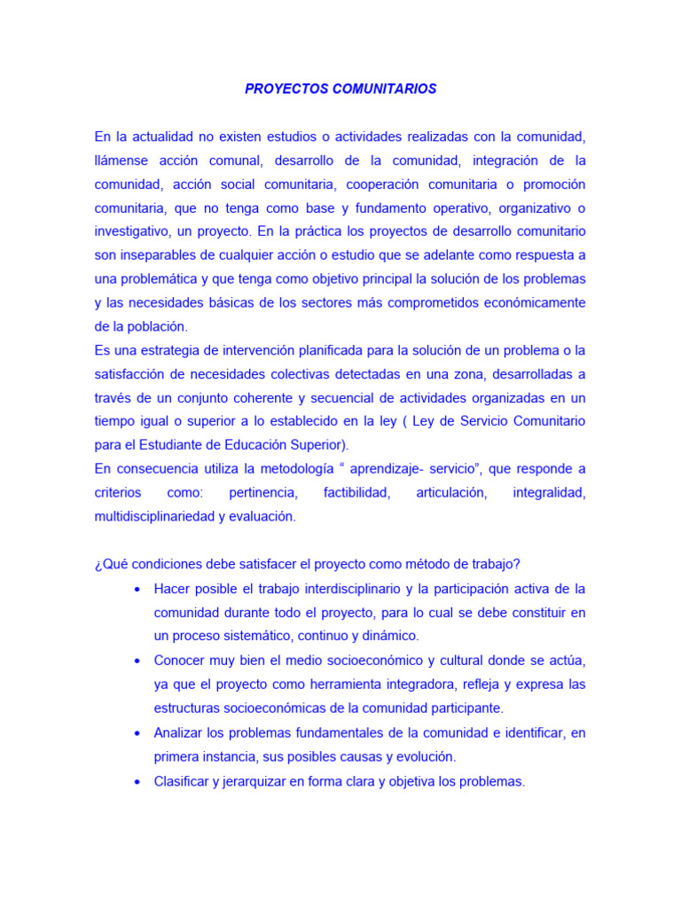 investigativo, un proyecto. En la práctica los proyectos de desarrollo comunitario