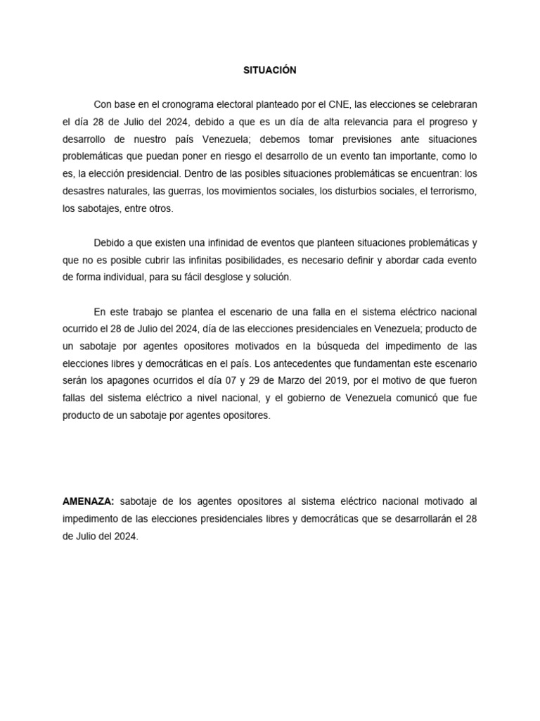 es, la elección presidencial. Dentro de las posibles situaciones problemáticas se encuentran: los