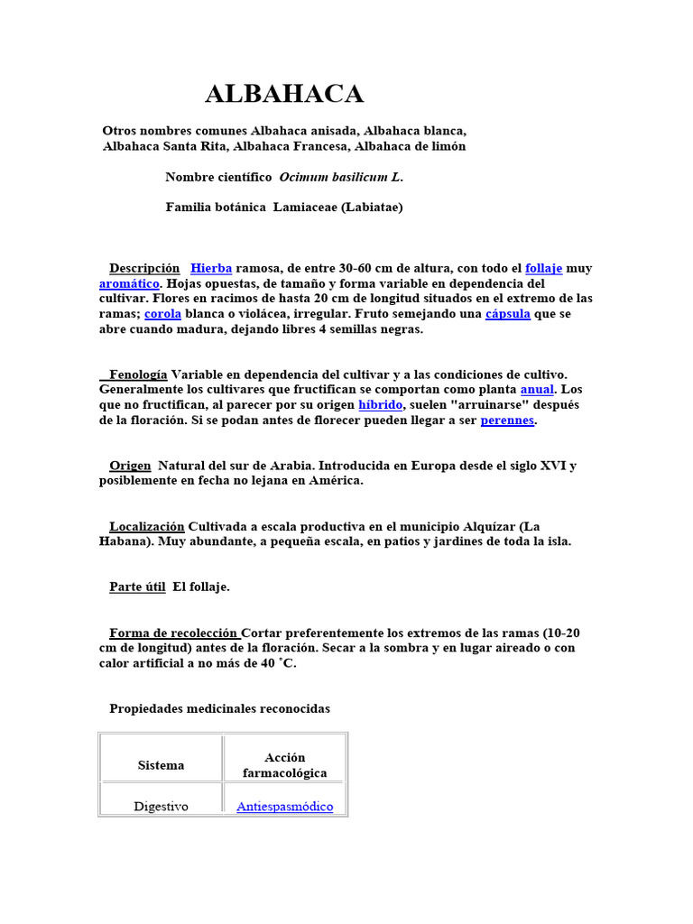 Nombre científico Ocimum basilicum L.