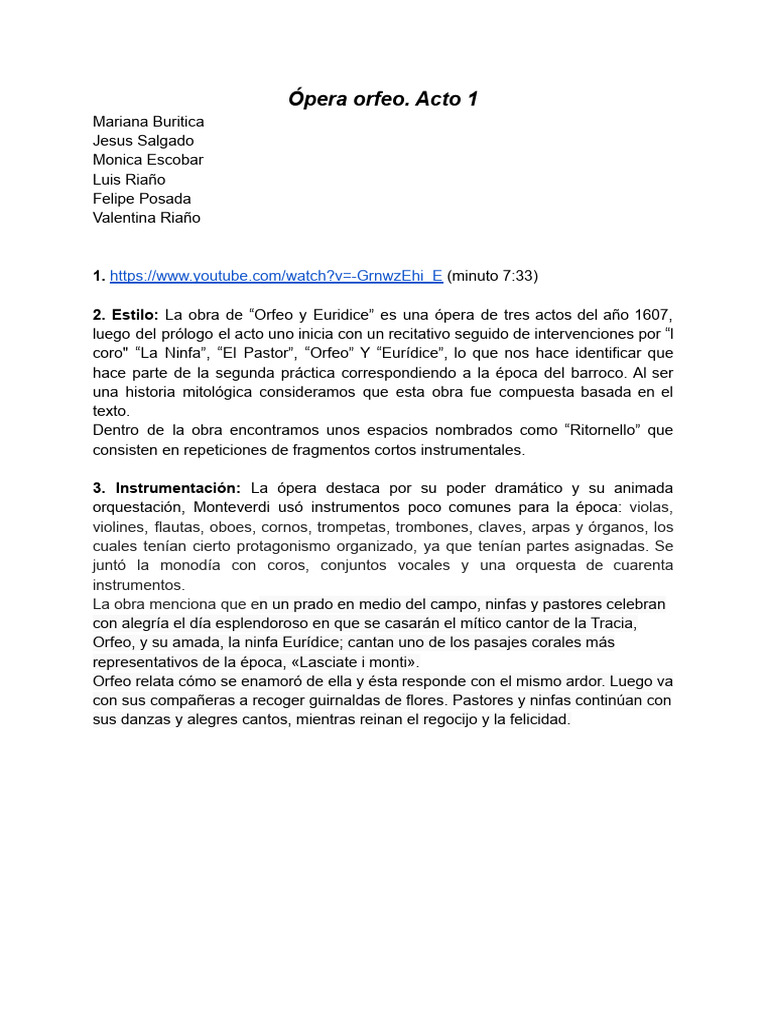 2. Estilo: La obra de “Orfeo y Euridice” es una ópera de tres actos del año 1607,