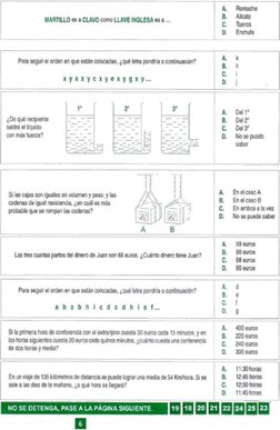 Cada ejercicio va seguido de cuatro posibles respuestas, y delante de éstas las letras A, B, C