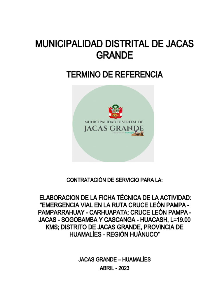 CASCANGA - HUACASH, L=19.00 KMS; DISTRITO DE JACAS GRANDE, PROVINCIA DE