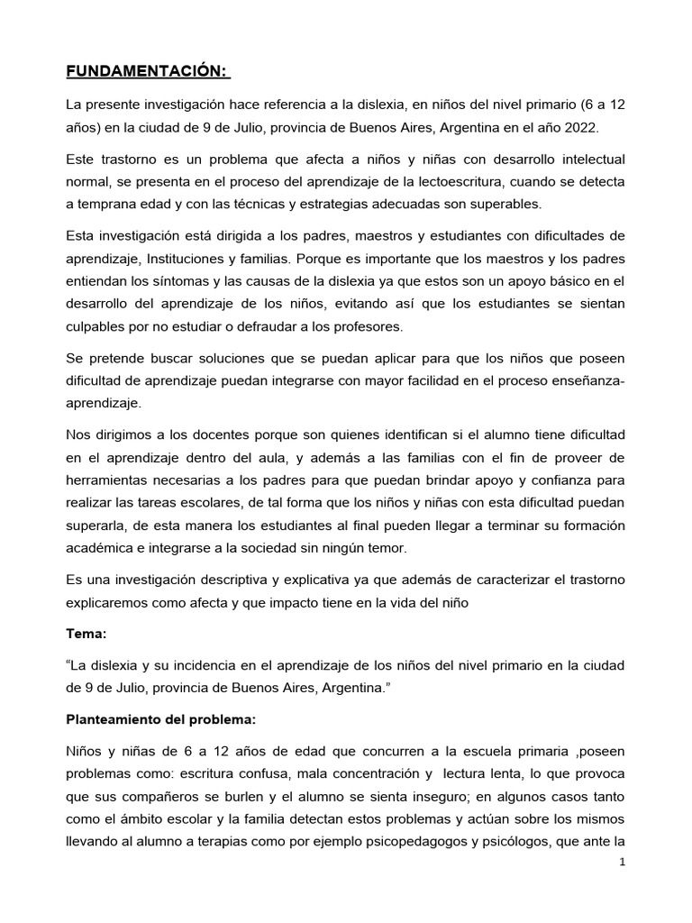 La presente investigación hace referencia a la dislexia, en niños del nivel primario (6 a 12