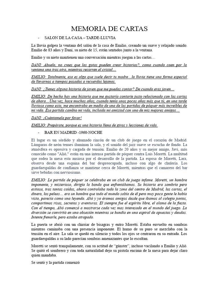 EMILIO: La partida de póquer se celebraba en un club de juego infame. Moretti, un hombre