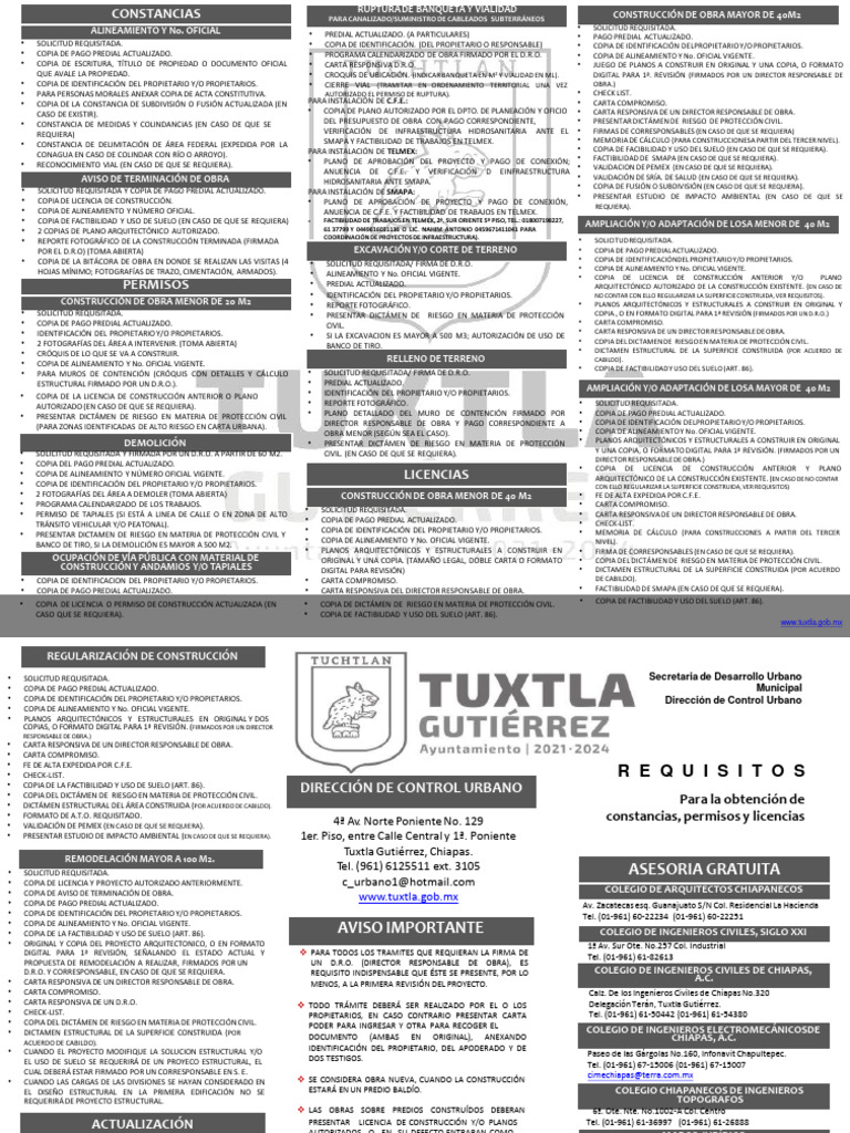 • PRESENTAR DICTÁMEN DE RIESGO EN MATERIA DE PROTECCIÓN CIVIL • PLANO DETALLADO DEL MURO DE CONTENCIÓN FIRMADO POR • COPIA DE PAGO PREDIAL ACTUALIZADO.