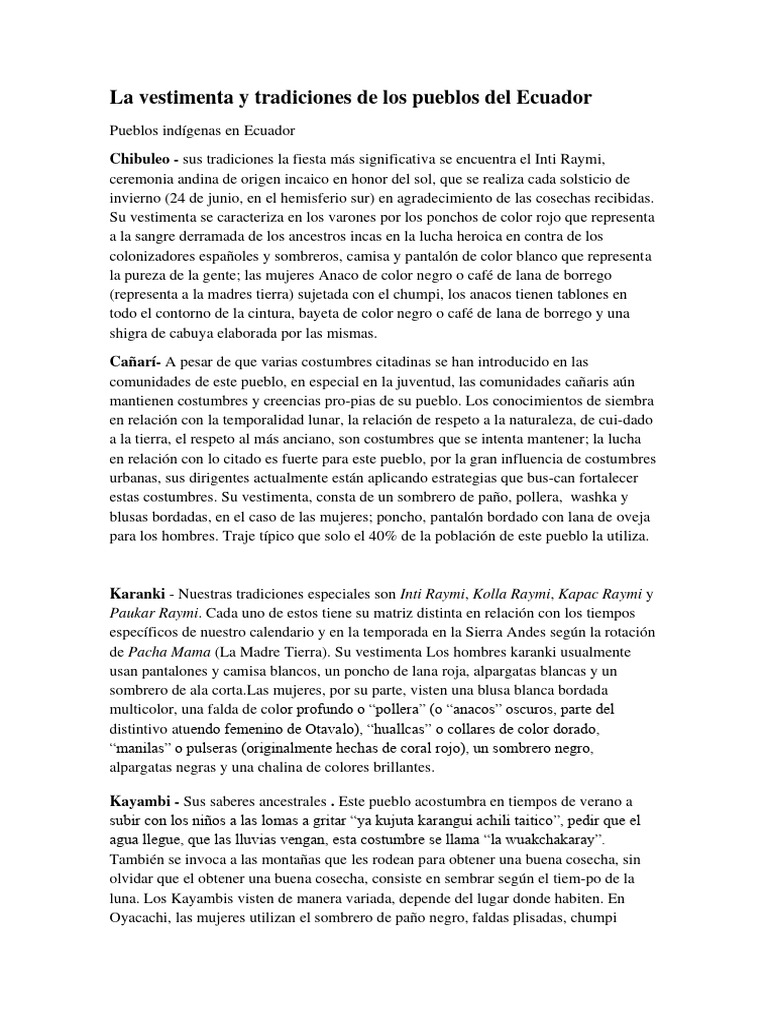 La vestimenta y tradiciones de los pueblos del Ecuador