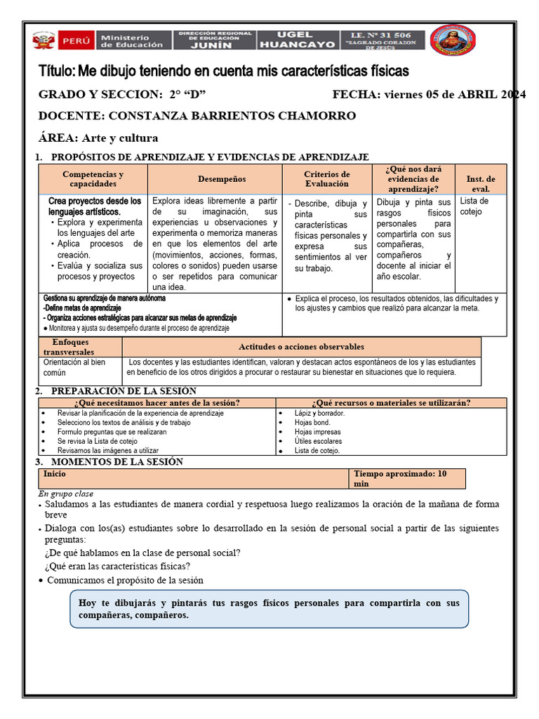 lenguajes artísticos. de su imaginación, sus pinta sus rasgos físicos cotejo