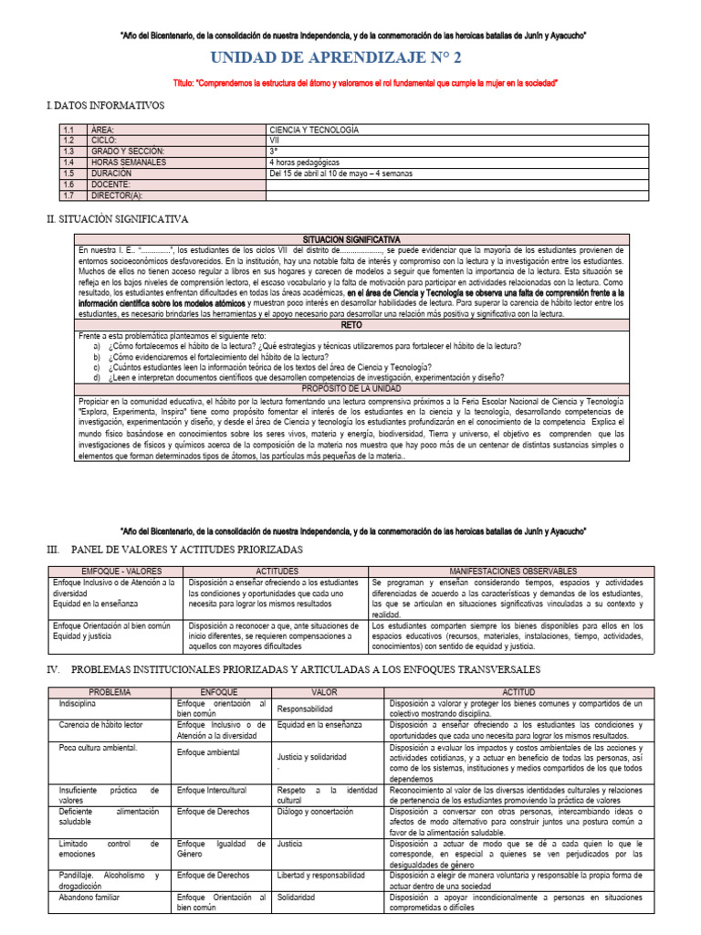 Título: “Comprendemos la estructura del átomo y valoramos el rol fundamental que cumple la mujer en la sociedad”