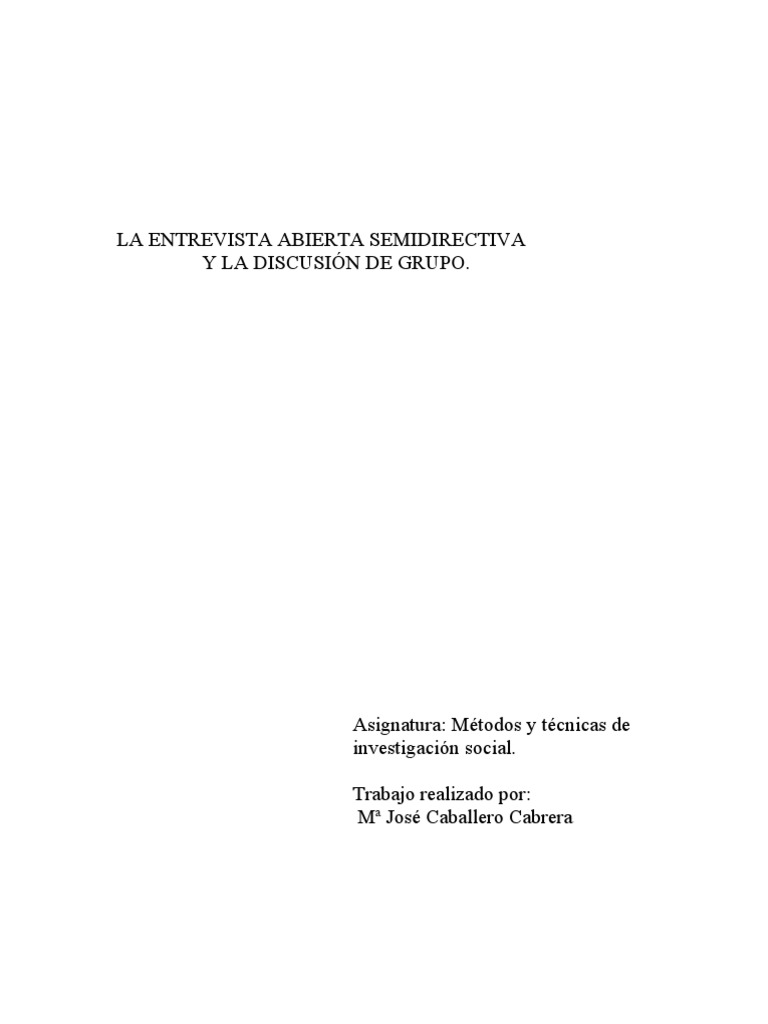 Asignatura: Mtodos y tcnicas de investigacin social. Trabajo realizado por: M Jos Caballero Cabrera