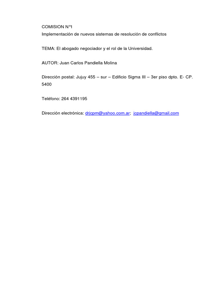 Dirección electrónica: drjcpm@yahoo.com.ar; jcpandiella@gmail.com