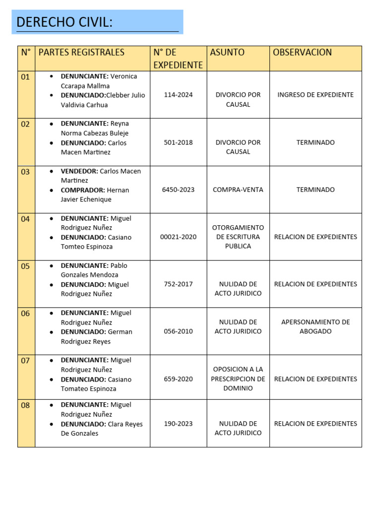 DENUNCIADO: Casiano 00021-2020 DE ESCRITURA RELACION DE EXPEDIENTES