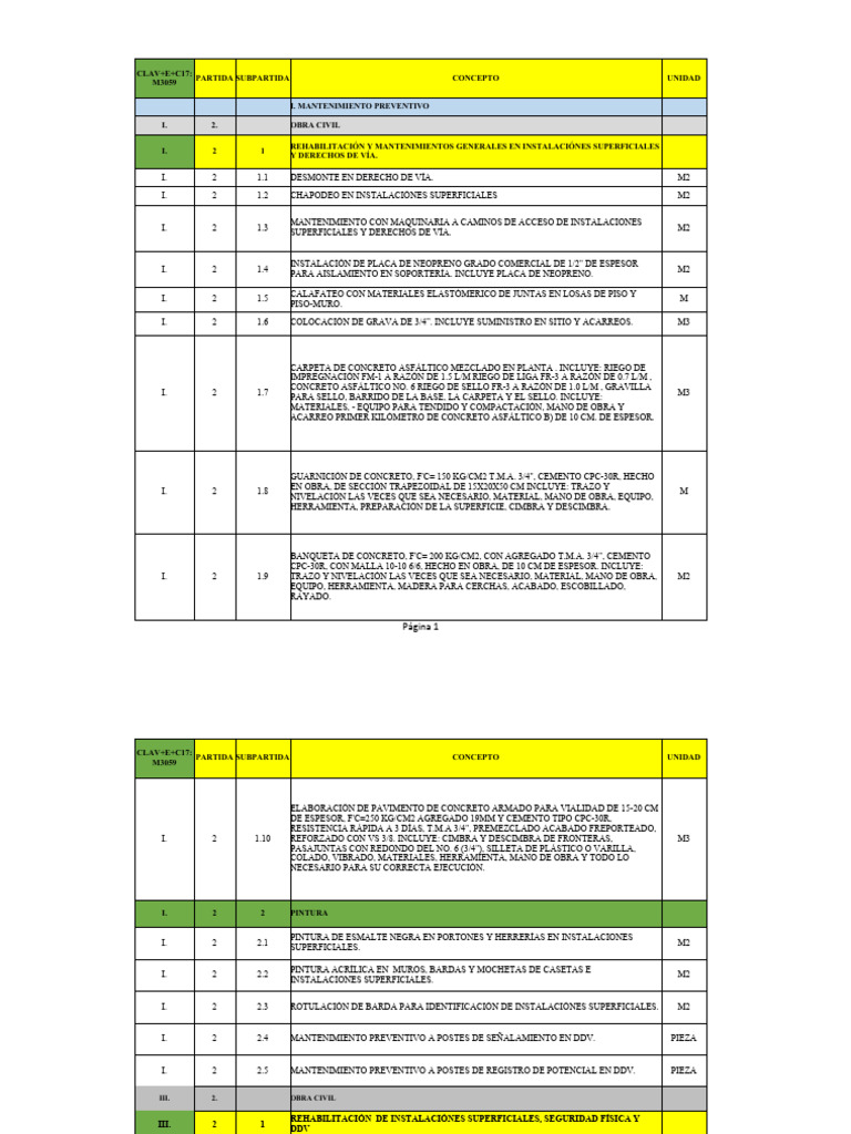 PARTIDA SUBPARTIDA CONCEPTO UNIDAD