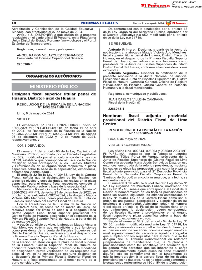 de 2024, las Resoluciones de la Fiscalía de la Nación resolución de lA fiscAlíA de lA nAción