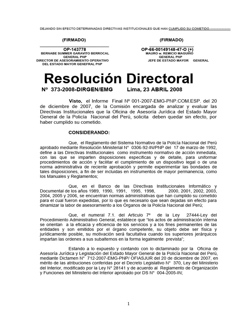 Nº 373-2008-DIRGEN/EMG Lima, 23 ABRIL 2008