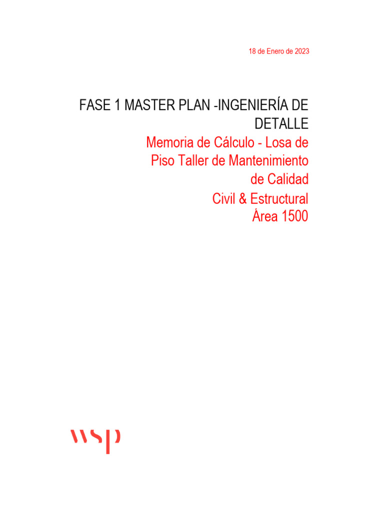 El presente documento presenta el análisis y diseño de la losa estructural para el área 1500, Ampliación