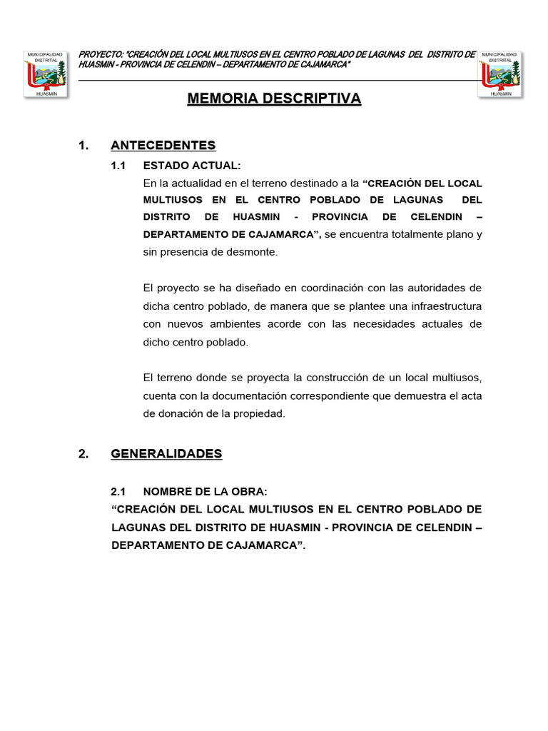 PROYECTO: “CREACIÓN DEL LOCAL MULTIUSOS EN EL CENTRO POBLADO DE LAGUNAS DEL DISTRITO DE