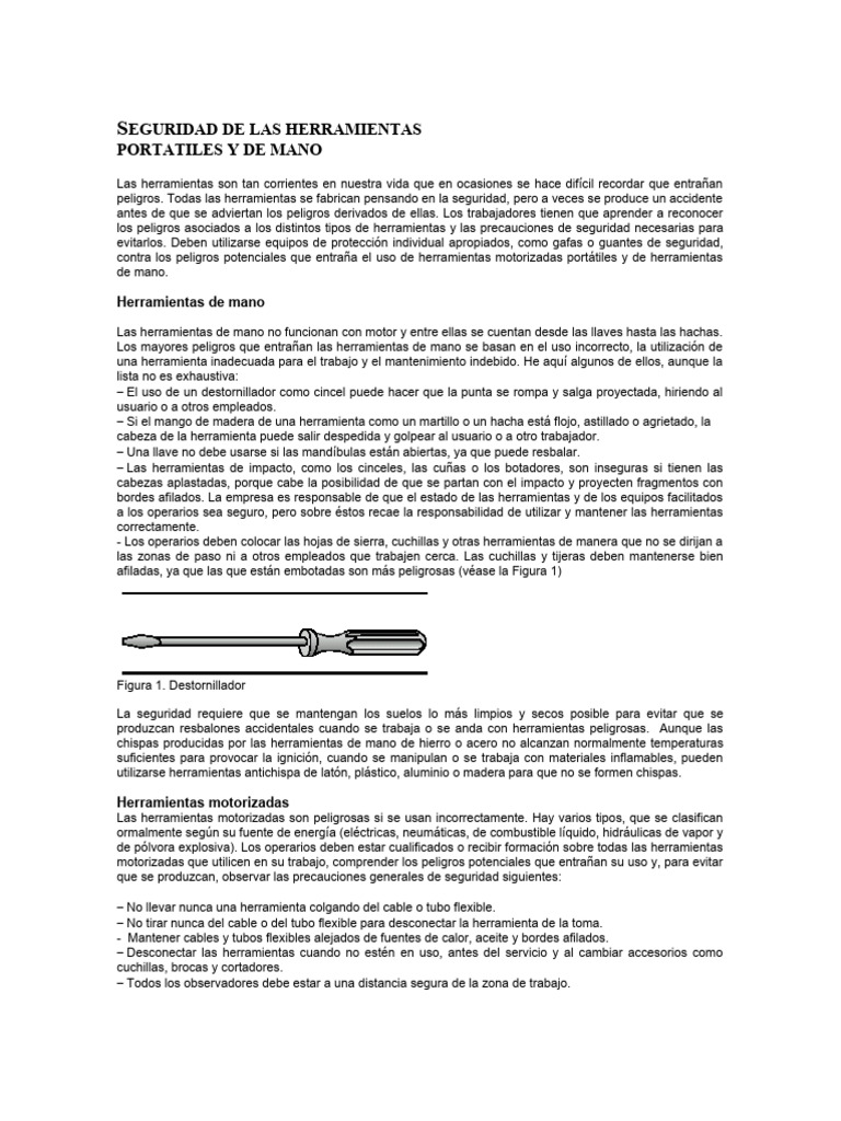 a los operarios sea seguro, pero sobre éstos recae la responsabilidad de utilizar y mantener las herramientas