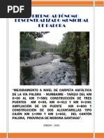 ASFÁLTICA DE LA VÍA PALORA - NUMBAIME - TARQUI DEL KM 0+00 AL KM 7+580;
