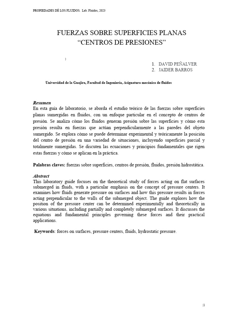 En esta guía de laboratorio, se aborda el estudio teórico de las fuerzas sobre superficies