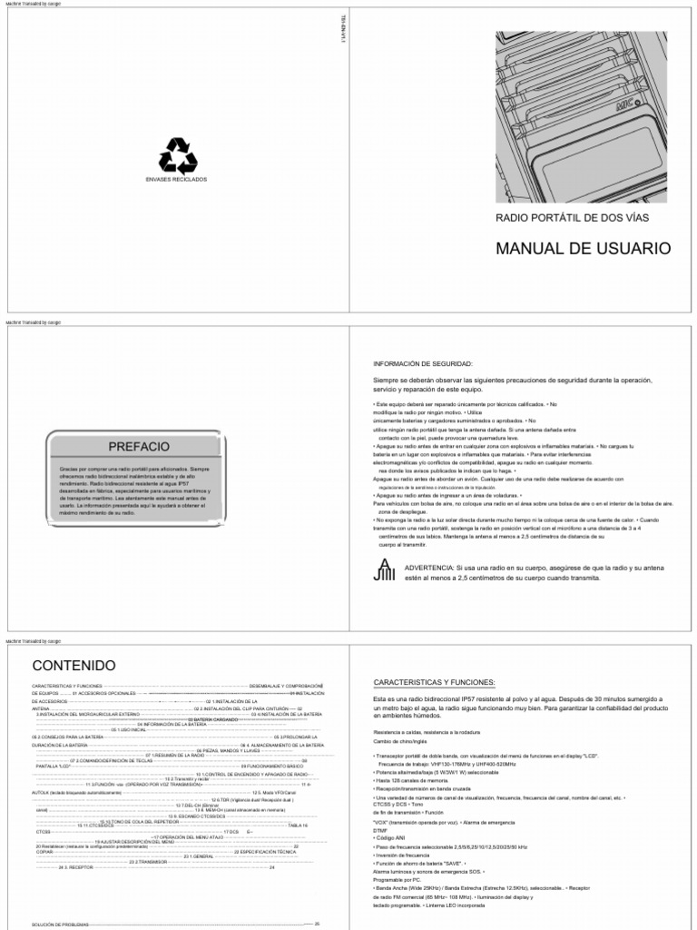Gracias por comprar una radio portátil para aficionados. Siempre rea donde los avisos publicados le indican que lo haga. •