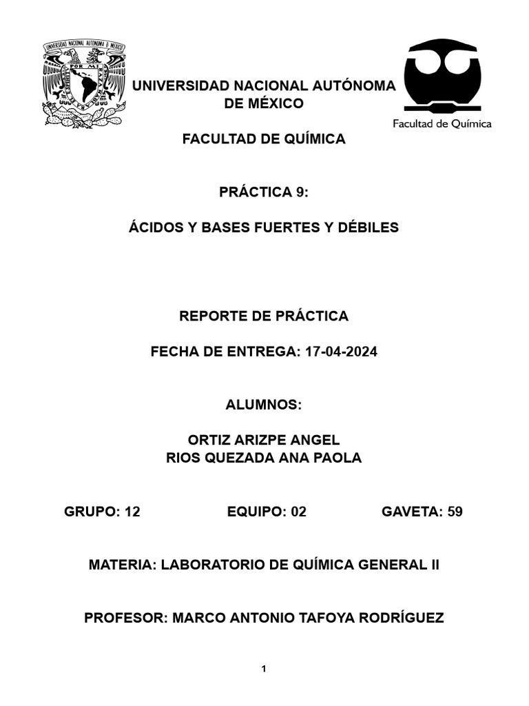 PRÁCTICA 9: ÁCIDOS Y BASES FUERTES Y DÉBILES. Recuperado de: