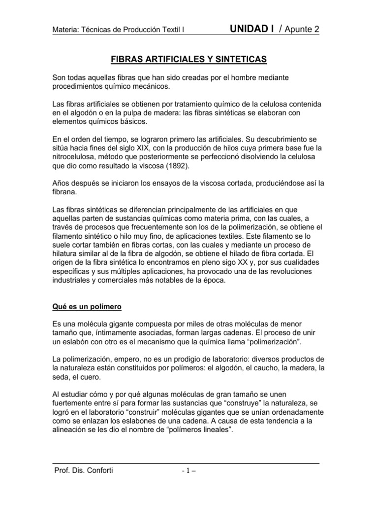 Materia: Técnicas de Producción Textil I UNIDAD I / Apunte 2