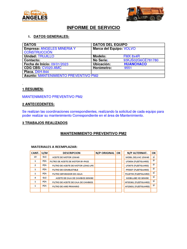 Empresa: ANGELES MINERIA Y Marca del Equipo: VOLVO