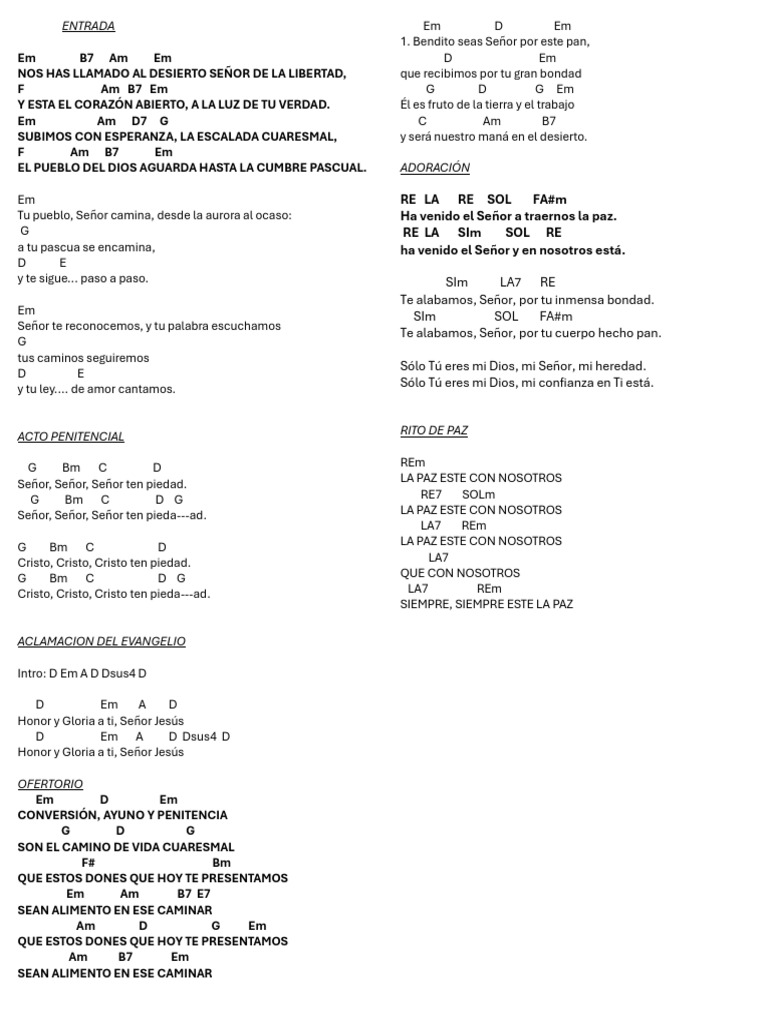 NOS HAS LLAMADO AL DESIERTO SEÑOR DE LA LIBERTAD, que recibimos por tu gran bondad