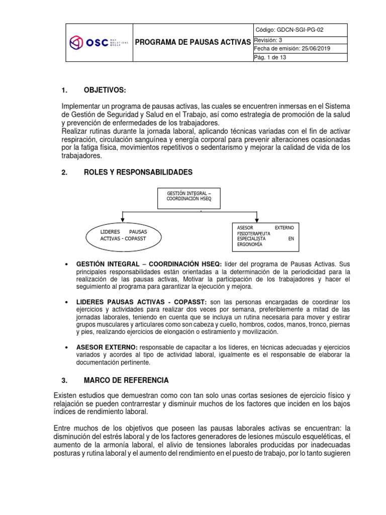 PROGRAMA DE PAUSAS ACTIVAS Revisión: 3