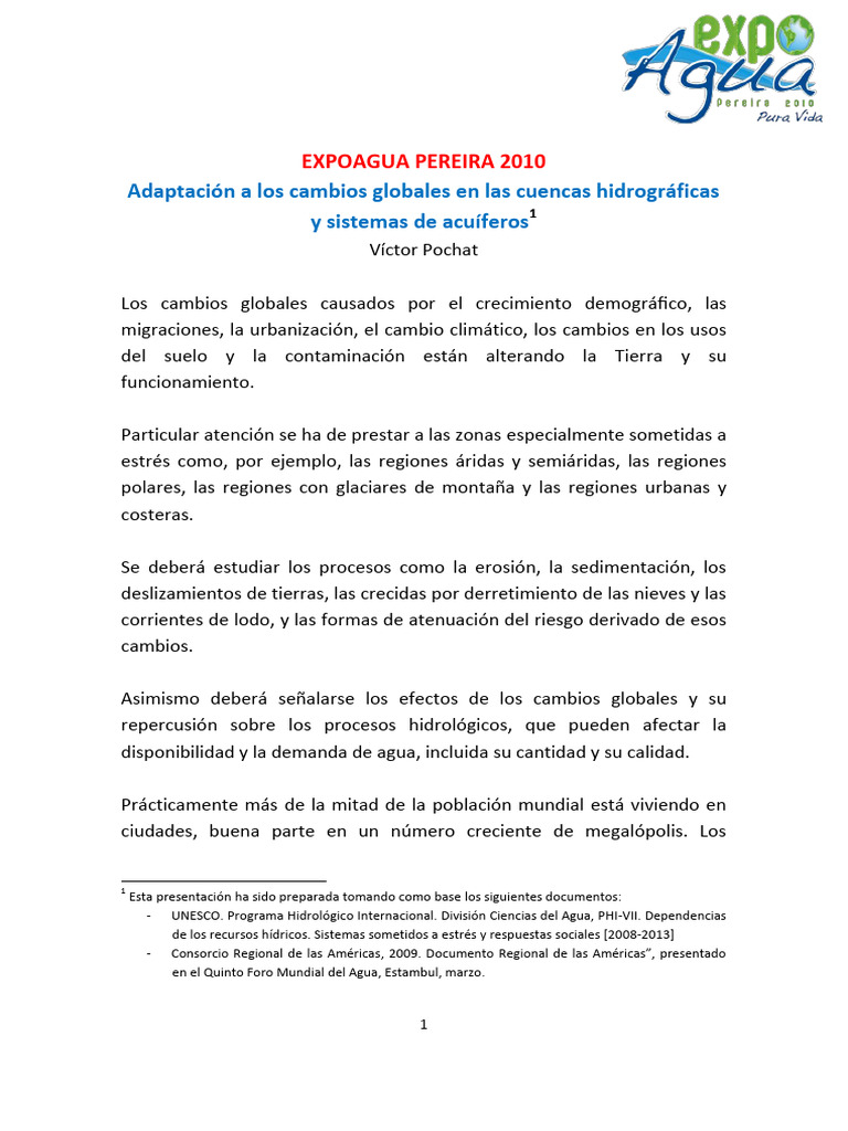 - UNESCO. Programa Hidrológico Internacional. División Ciencias del Agua, PHI-VII. Dependencias