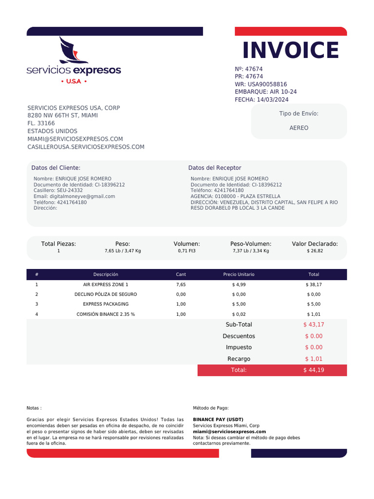 Gracias por elegir Servicios Expresos Estados Unidos! Todas las BINANCE PAY (USDT)