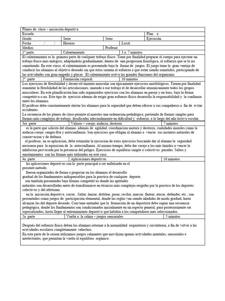 Planes de clase – iniciacion deportiva